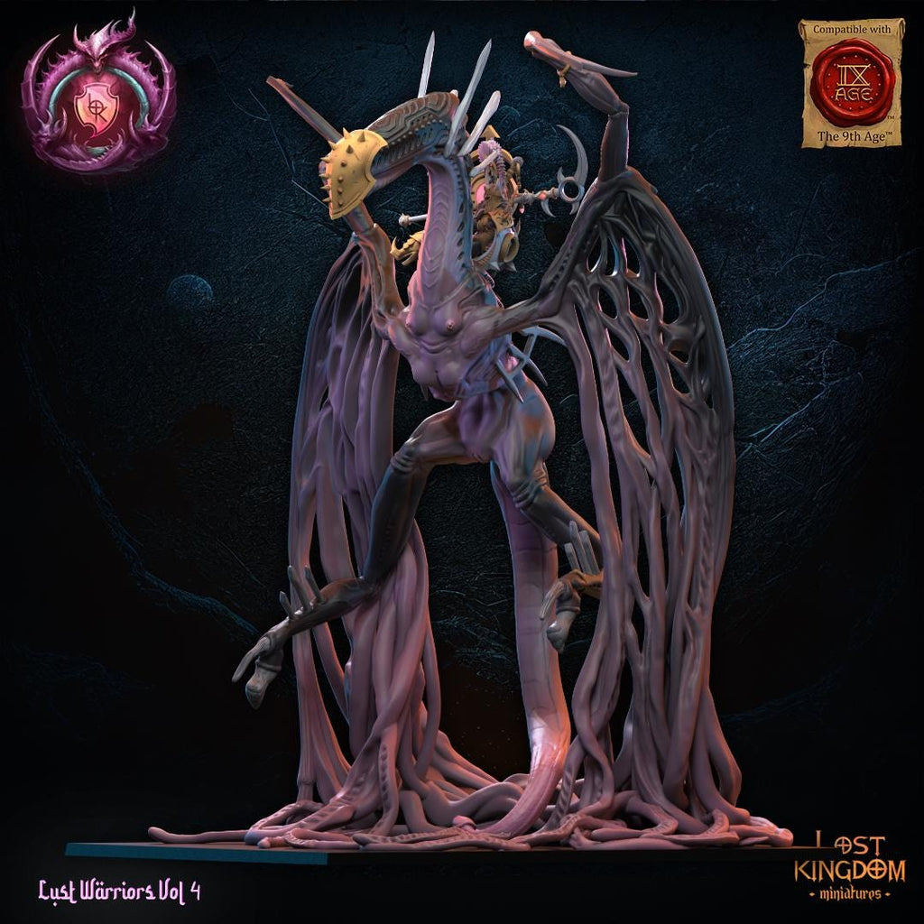 Warriors of the Dark Gods (Lust Warriors) - Skye, Lust Chosen on Depraved Dragon by Lost Kingdom Miniatures
